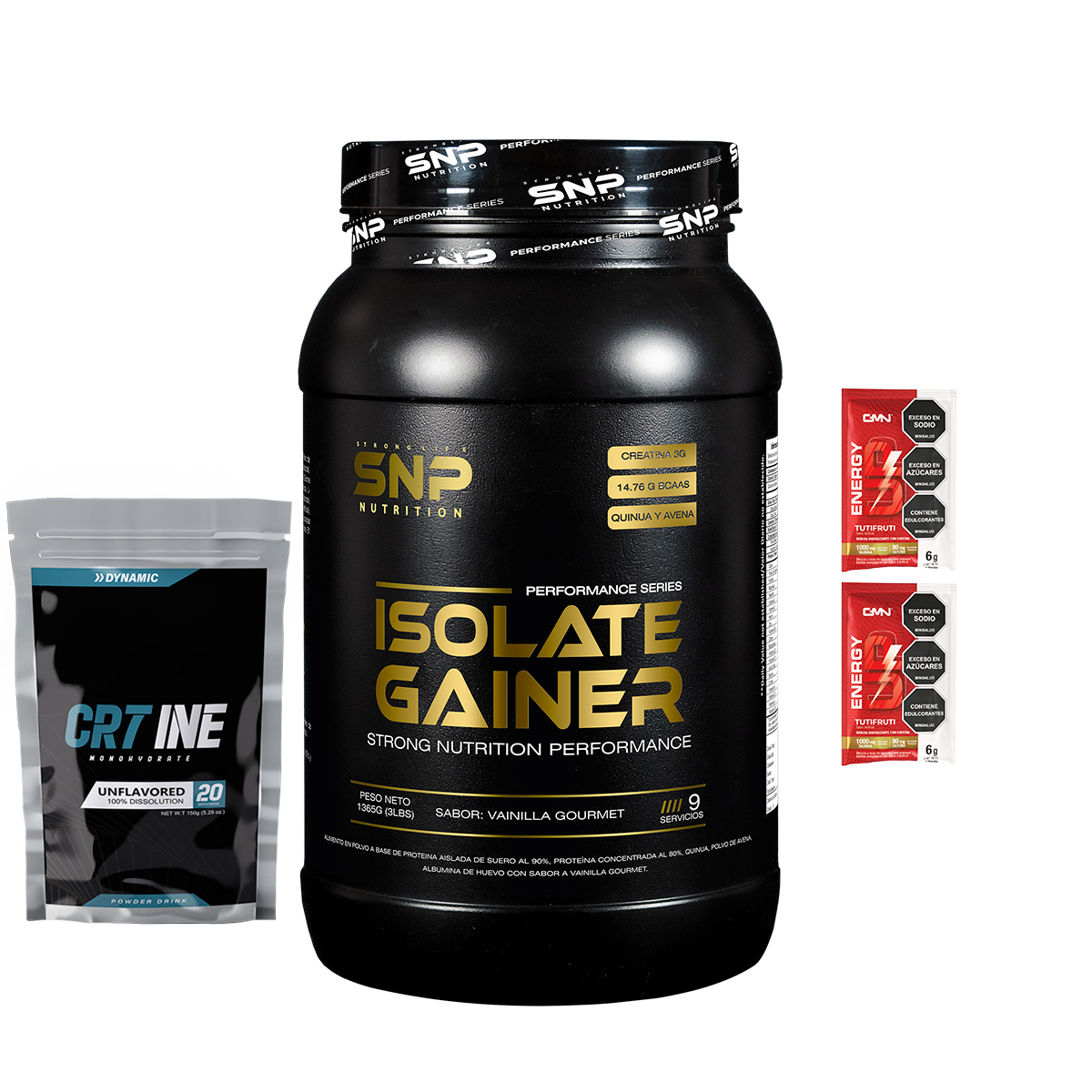Pack Isolate Gainer 3 lb con Creatina CR7 y Energy Up | Combo Avanzado para Ganar Masa Muscular Limpia